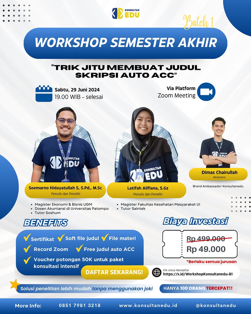 Jangan biarkan kesulitan dalam menulis skripsi menghambat proses akademikmu. Kunjungi KonsultanEdu.id untuk mendapatkan dukungan dan konsultasi profesional. Hubungi kami melalui WhatsApp di 0851-7685-1321 atau 0851-7959-1321 untuk menjadwalkan konsultasi. Tim ahli kami siap membantu memperlancar proses penelitian dan penulisanmu. Capai kesuksesan dengan bantuan profesional, hubungi kami sekarang juga!